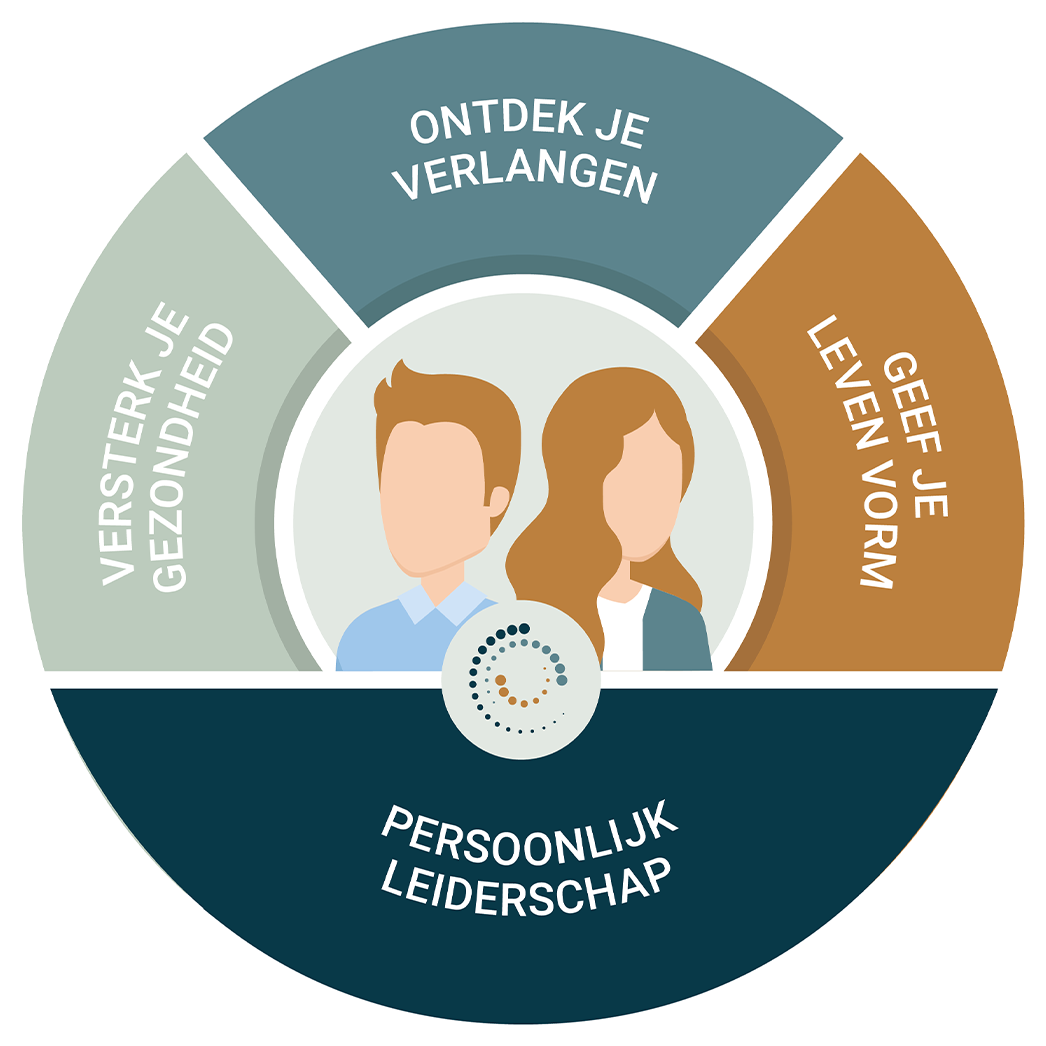 Het uitgangspunt is dat je zelf verantwoordelijk bent om aan het stuur te zitten, je zelf je leven inricht en vormgeeft. In het model noem ik dat persoonlijk leiderschap. Het gaat om jezelf leiden en jezelf sturing geven. Er is er maar een die je leven kan leven en dat ben jij. Hoe je dat doet, dat bepaal jij. Mijn trajecten hebben als doel om inzicht en kennis te geven zodat jij, vanuit persoonlijk leiderschap, jouw leven vorm kunt geven. Zodat je uit het leven kunt halen wat erin zit.